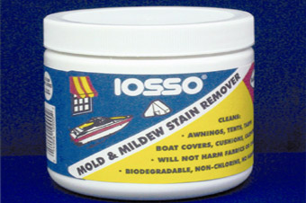 ZAP mold, mildew, dirt and algae stains from virtually every surface with IOSSO mold & mildew stain remover. Safe to use on fabrics and colors. Removes stains from vinyls, plastics, canvas, carpeting, wood, fiberglass and painted surfaces. 12 oz container.